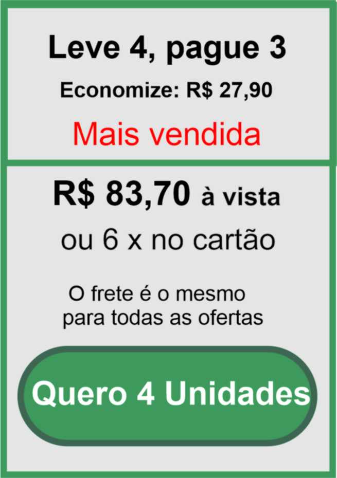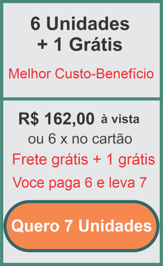 Ao adquirir o kit promocional, você recebe 7 unidades pelo valor de 6 e ganha frete grátis para todo Brasil. Ideal para quem quer economizar, compartilhar ou revender. A oferta é válida enquanto durarem os estoques.